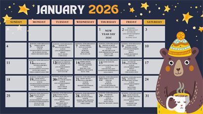 View our current month's calendar: Current Calendar